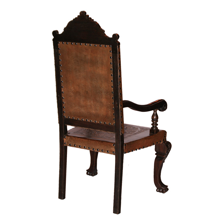 Product: Armchair Dimensions: 22"w x 20"d x 47"h Style: Hand Carved Wood & Hand-Tooled Leather Color: WS05 Coffee Motif: 0 Origin: Brazil Product ID: BRQ-ACH-CV-704 MSRP: $2,938