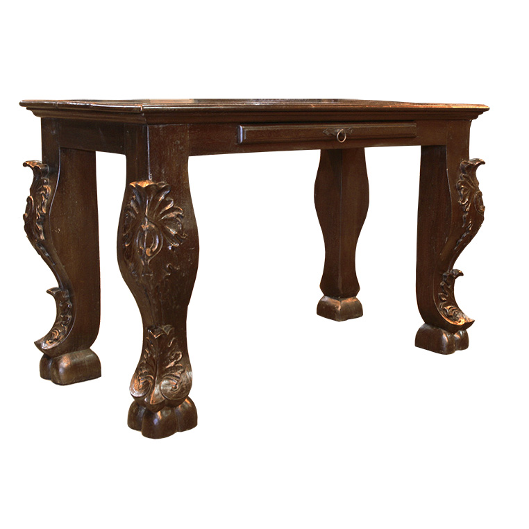 Product: Desk Dimensions: 48"w x 28"d x 30"h Style: Handcarved Wood Color: WS04 Dark Brown Motif: Origin: Brazil Product ID: BRQ-DSK-CV-800 MSRP: $8,100 Sale Price: $5,670