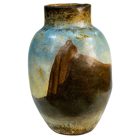 These exquisite special edition antique jars are meticulously handpainted with exotic Brazilian landscapes, flora and fauna. Available in large size only.