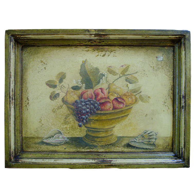 Product: Painting Dimensions: 32"w x 1"d x 24.5"d Style: Hand Painted Wood Color: PL12/PL02 Sage/Sand Motif: 1/7 - Fruits/Sea Shells Origin: Brazil Product ID: CLN-ACC-PT-1605 MSRP: $3,024 Sale Price: $2,117