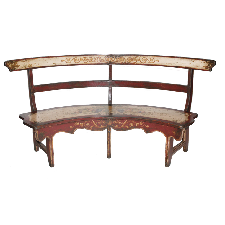Product: Hand Painted Bench Dimensions: For 70"dia Table Style: Hand Painted Wood Color: PL05/PL02 Spicy Red/Sand Motif: 1 - Fruits Origin: Brazil Product ID: CLN-BCH-PT-716c