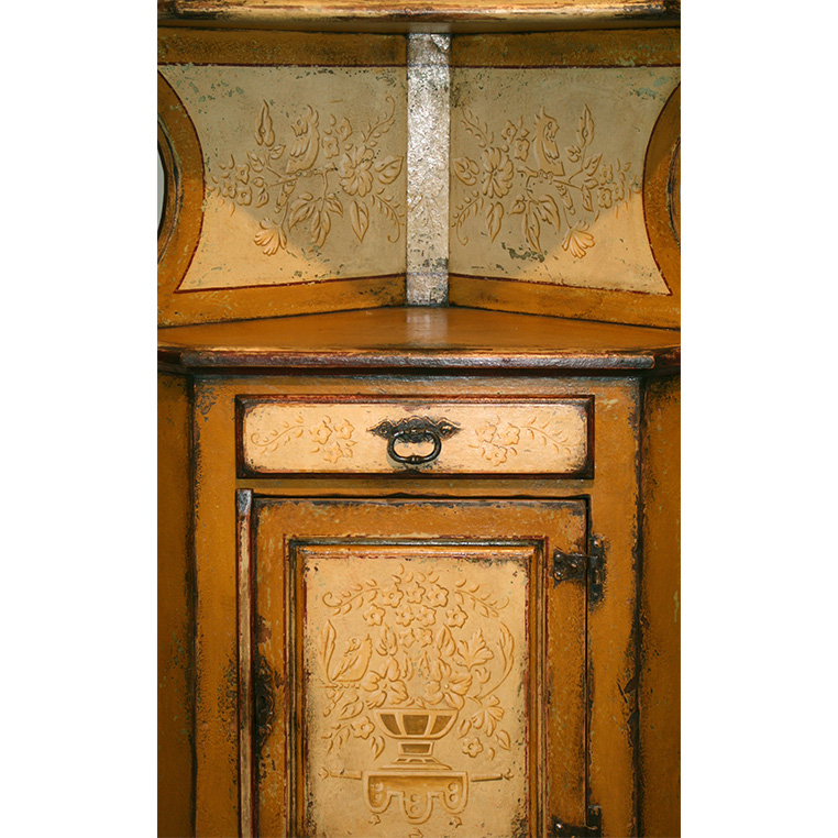 Product: Curio Cabinet Dimensions: 37"w x 26"d x 98"h Style: Handpainted Wood Color: PL04/PL02 Saffron/Sand Motif: 12 - Oriental Origin: Brazil Product ID: CLN-CCB-PT-206 MSRP: $11,700 Sale Price: $8,190
