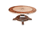 Product: Coffee Table Dimensions: 52"dia x 24"h Style: Hand Painted Wood Color: PL20/PL02/PL14 Eastern Red/ Sand/ Black Gold Motif: 13 - Scrolls Origin: Brazil Product ID: CLN-COF-PT-552
