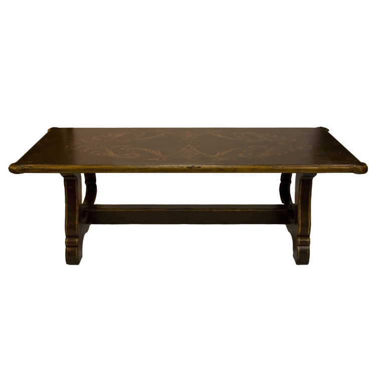 Product: Dining Table Dimensions: 98"w x 44"d x 31"h Style: Handpainted Wood Color: PL06/PL04 Sienna/Saffron Motif: 13 Scrolls Origin: Brazil Product ID: CLN-DIN-PT-609c MSRP: $9,072