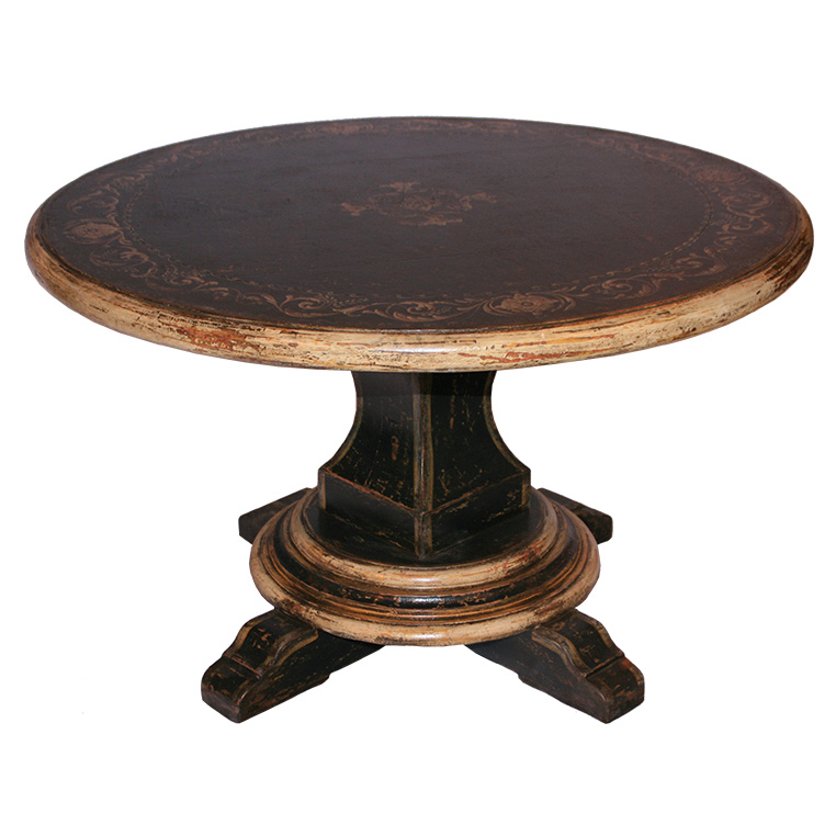 Product: Table Dimensions: 50"dia x 30"h Style: Hand Painted Wood Color: PL14 Black Gold Motif: 13 - Scrolls Origin: Brazil Product ID: CLN-DIN-PT-636