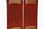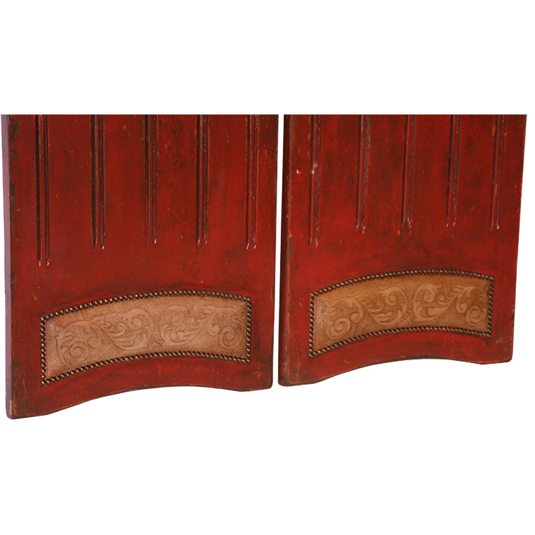 Product: Swinging Door With Leather Dimensions: 51"w x 60"h Style: Hand Painted Wood & Hand-tooled Leather Color: PL05 Spicy Red Motif: Origin: Brazil Product ID: ELM-DOR-PT-1504
