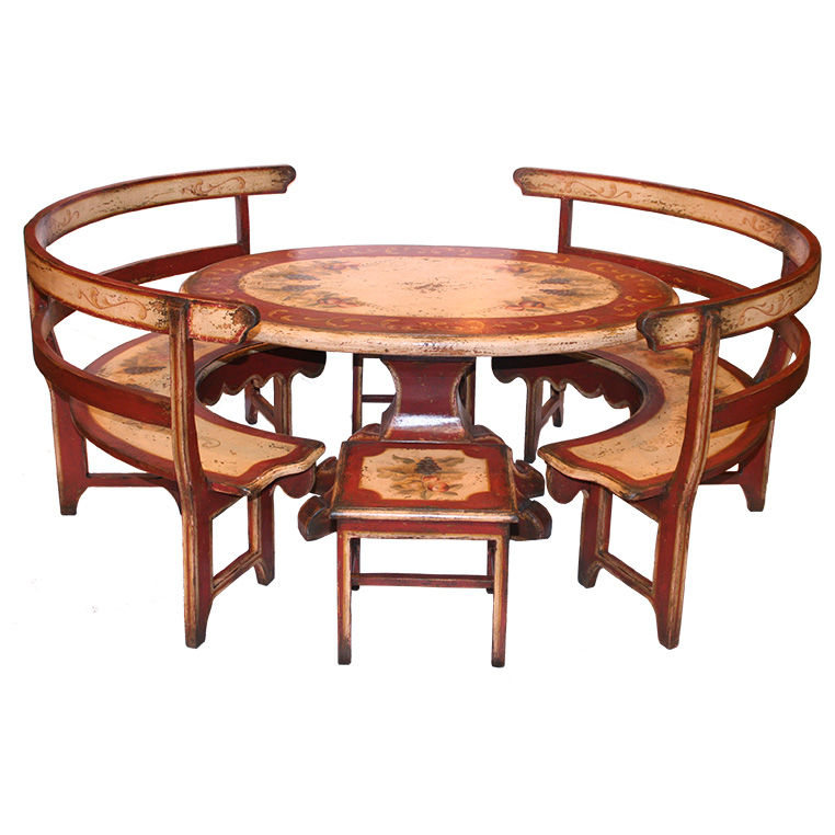 Product: 5 Piece Dining Set Dimensions: Oval Table: 60"w x 40"d x 30"h Style: Hand Painted Wood Color: PL05/PL02 Spicy Red/ Sand Motif: 1 Fruits Origin: Brazil Product ID: ESB-DIN-2126