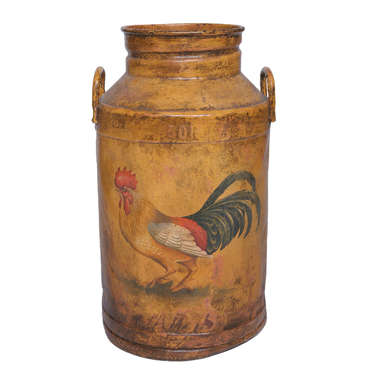 Product: Milk Canister Dimensions: 10"w x 25.5"h Style: Handpainted Can Color: PL03 Apricot Motif: 5 - Rooster Origin: Brazil Product ID: HCD-ACC-PT-1603 MSRP: $795