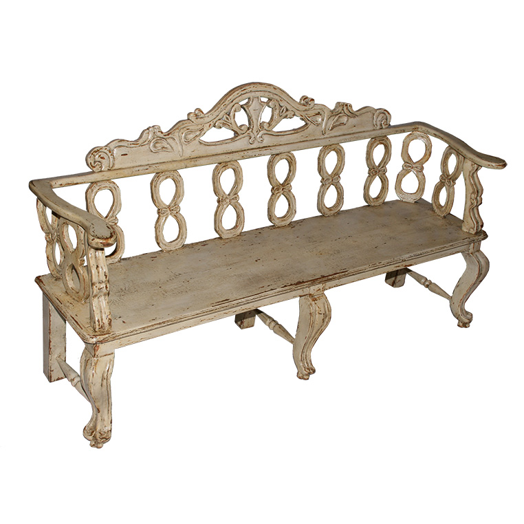 Product: Bench Dimensions: 73"w x 18"d x 40"h Style: Hand Carved/ Painted Wood Color: PL02 Sand Motif: Origin: Brazil Product ID: LND-BCH-PT-707a
