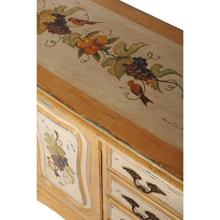 Product: Buffet Dimensions: 94"w x 22.5"d x 39"h Style: Handpainted wood Color: PL03/PL02 Apricot/Sand Motif: 1 - Fruits Origin: Brazil Product ID: LND-BUF-PT-310