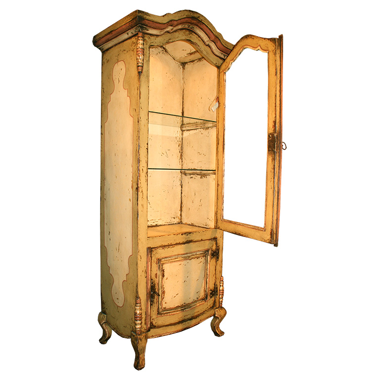 Product: Curio Cabinet Dimensions: 30"w x 18"d x 76"h Style: Hand Painted Wood Color: PL12/PL02 Sage/Sand Motif: 13 - Scrolls Origin: Brazil Product ID: LND-CCB-PT-200a MSRP: $8,640
