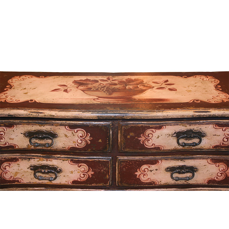 Product: Dresser Dimensions: Hand Painted Wood Style: 52"w x 18"d x 46"h Color: PL06/PL02/PL24 Sienna/ Sand/ Gold Leaf Motif: 9/13 Monochromatic Fruits/ Scrolls Origin: Brazil Product ID: LND-DRS-PT-917