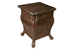 Product: Nightstand Dimensions: 24"w x 24"d x 30"h Style: Hand Carved Wood Color: WS04 Dark Brown Motif: Origin: Brazil Product ID: LND-NST-CV-903b