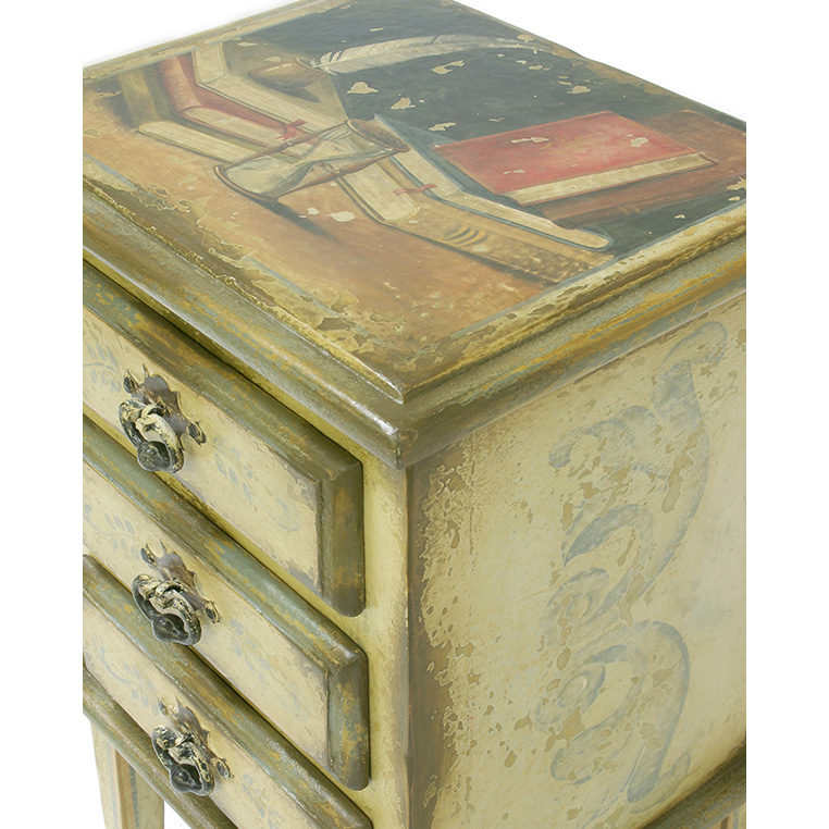 Product: Nightstand Dimensions: 19"w x 15"d x 35"h Style: Hand Painted Wood Color: PL01 Coconut Motif: 23 - Library Origin: Brazil Product ID: NIA-NST-PT-904