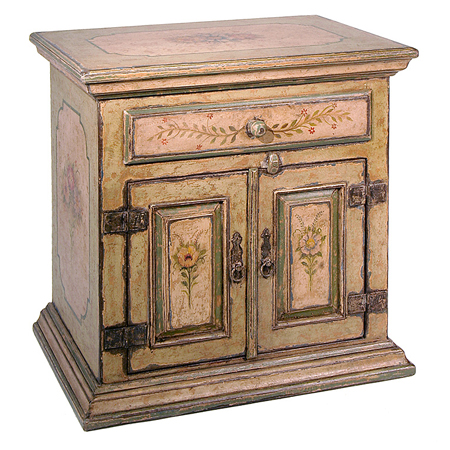 Product: Nightstand Dimensions: 37"w x 13"d x 28"h Style: Hand Painted Wood Color: PL18/PL02 Celery/Sand Motif: 17 - Flowers Origin: Brazil Product ID: NIA-NST-PT-906
