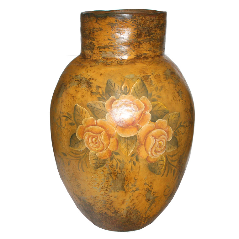 Product: Clay Jar Dimensions: Large Style: Handmade Clay Jar Color: PL03 Apricot Motif: 18 Roses Origin: Brazil Product ID: STK-HMJ-PT-053 MSRP: $433