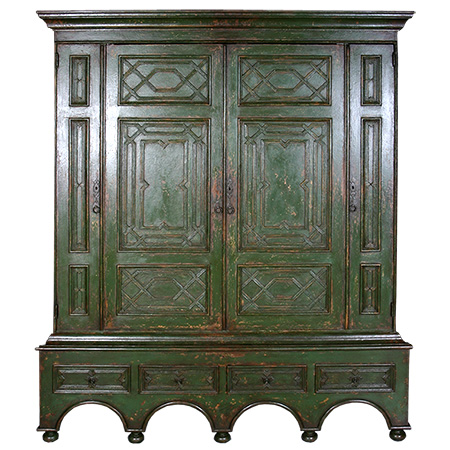 Product: Armoire Dimensions: 86"w x 25"d x 108"h Style: Hand Carved/Painted Wood Color: PL13 Kiwi Motif: Origin: Brazil Product ID: RWD-ARM-PT-103