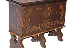 Product: Trunk Dimensions: 45"w x 18"d x 36"h Style: Hand Painted Wood Color: PL06 Sienna Motif: 13 Scrolls Origin: Brazil Product ID: RWD-TRK-PT-1101