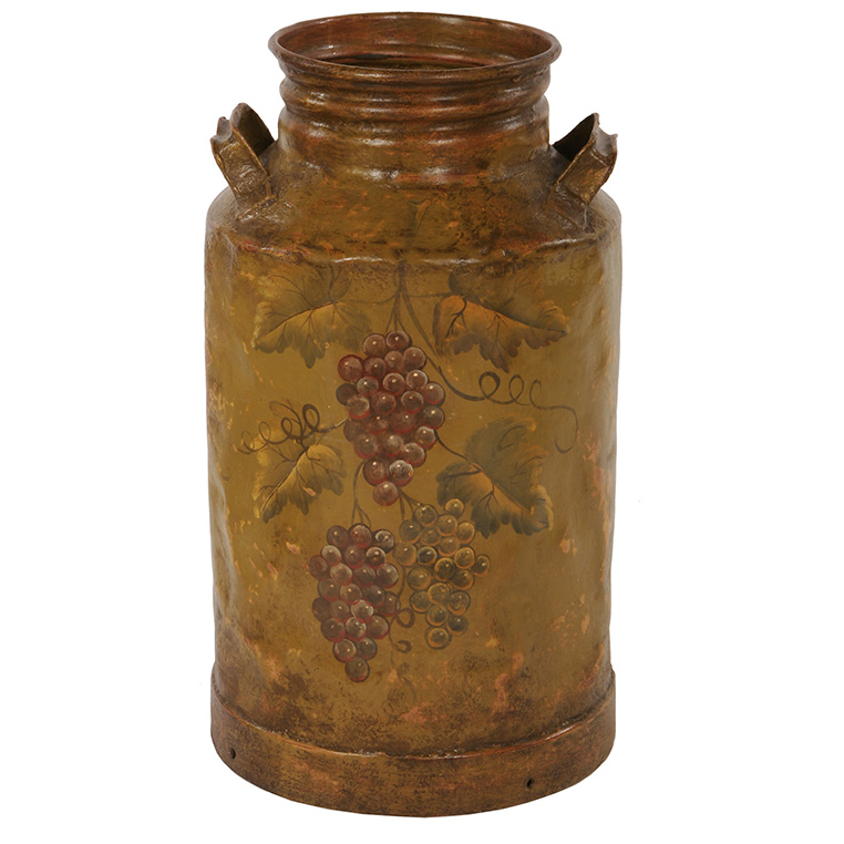Product: Milk Canister Dimensions: 13"w x 25.5"h Style: Hand Painted Can Color: PL11 Olive Motif: 16 - Grapes Origin: Brazil Product ID: VNY-ACC-PT-1611